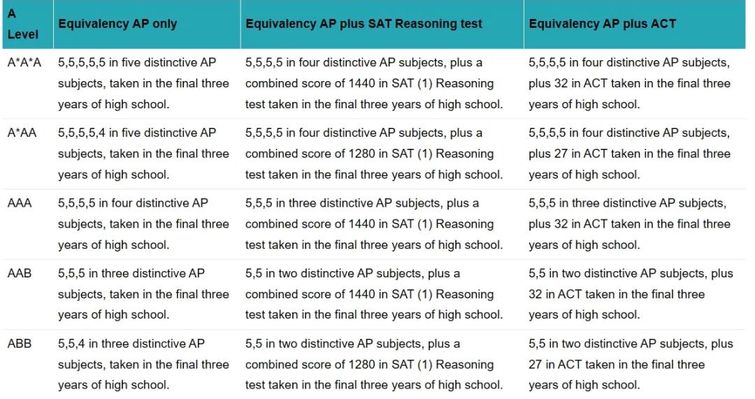 根據所申請課程的不同,分數要求通常在AAA至AAA*之間浮動。