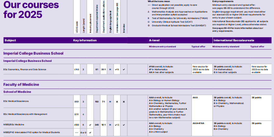 ◎A-level課程:申請者需提交3至5門A-level課程成績,分數要求在AAA至AAAAA*之間,具體分數要求取決于所申請的課程。