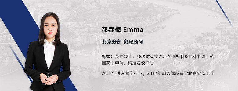 Emma老師國內師范大學碩士畢業,五年留學行業經驗,多次到英國院校參加培訓,用獨特的眼光以及之前的申請經驗去幫助學生挑選最適合他們的專業和學校,規劃好以后的職業方向,“助”您留學申請成功,實現您的留學夢想。秉著專業,耐心,富有責任心的態度去處理每一位學生的事情,高成功率低投訴,成功案例500+,被學生稱為貼心小姐姐,我喜歡這份工作帶來的喜悅,深知教育行業是良心產業,希望在我的幫助下,每一個學生都能有所收獲。