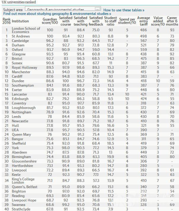 近期,英國《衛報》發布了英國大學綜合排名,同時也發布了2016《衛報》英國大學專業排名,根據最新的2016《衛報》英國大學藝術專業排名可以看出,此次排名位于首位的是倫敦大學學院,第二名牛津大學,第三名為紐卡斯特爾大學,第四名為愛丁堡大學,具體如下: