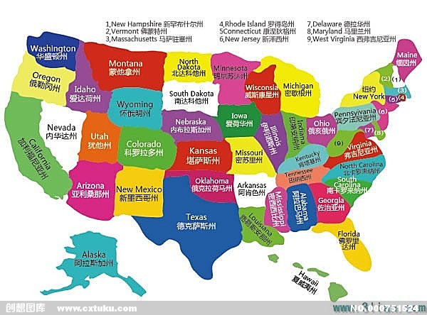 新罕布什爾州(New Hampshire):位于美國新英格蘭地區(New England),因盛產多彩的花崗巖而得名“花崗巖州”(the Granite State)。