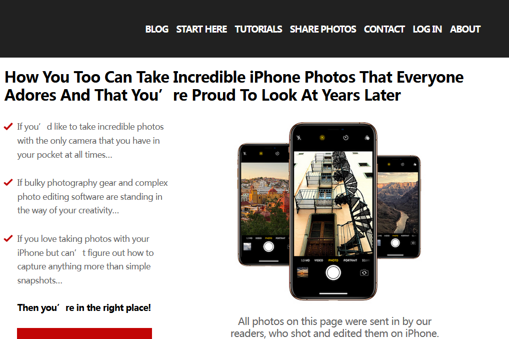 ??想買單反?買不起!但是手機我們還是買的起的,不管男生女生,手機上都有美圖秀秀類似的修圖軟件,但是你是不是發現不管怎么修圖,最后的照片都不怎么好看。這個網站很適合想用手機學拍照的小伙伴們瀏覽,它能夠教你如何使用手機拍出同單反效果一樣好看的照片,此外,該網站還會提供大量的拍攝技巧以及后期照片修改的教程,反正小編收藏了這個網站。