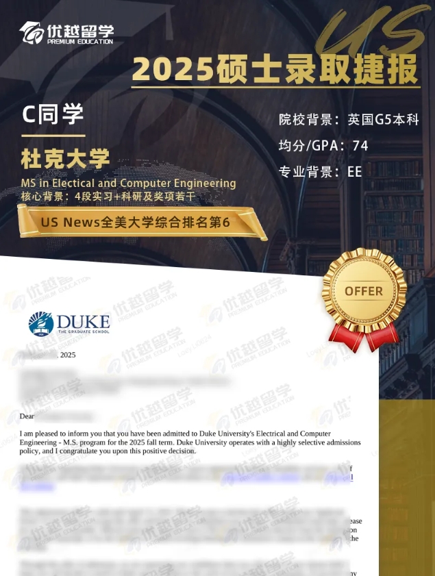 以上是【【美國碩士】雙非逆襲TOP6!斬獲杜克、JHU、UCL等7份頂尖ME offer!】相關的全部內容,查看更多【美國本科留學】相關資訊可前往【優越留學】首頁!詳細申請規劃及方案定制請預約優越留學顧問為你一對一解答!